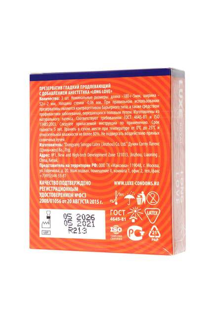 Bao cao su Luxe Royal Long Love kết hợp hoàn hảo giữa an toàn và khoái lạc đỉnh cao. Hiệu ứng prolonging tự nhiên giúp kiểm soát thời gian "yêu" tốt hơn, tăng sự tự tin cho phái mạnh mà không cần lo lắng.