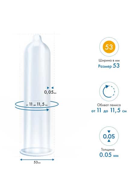 Đường kính danh nghĩa: 53 mm (nửa chu vi dương vật cương cứng lý tưởng)