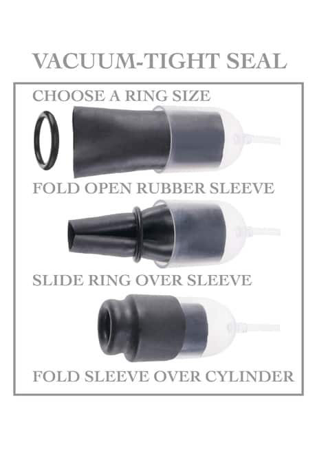 Chỉ vài bước đơn giản để tận hưởng hút kích thích đầu quy đầu chân thực. Chọn vòng đeo phù hợp, trượt vào tay áo bơm. Bôi gel gốc nước dồi dào lên đầu dương vật, đặt vào xi lanh rồi bơm tạo vacuum – lực hút mạnh ngay lập tức đánh thức dây thần kinh nhạy cảm!