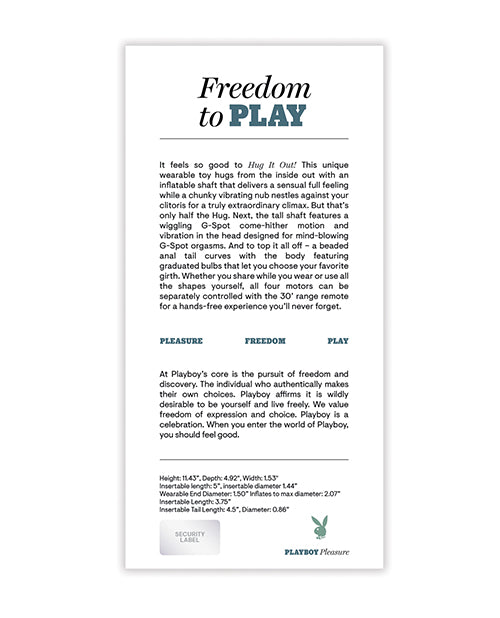 Bạn đang khao khát một đồ chơi tình dục mang khoái cảm bùng nổ, ôm chặt mọi điểm nhạy cảm? Playboy Hug It Out chính là "người tình lý tưởng", với thiết kế phồng rung độc quyền ôm sát âm vật, đánh thức cực khoái mãnh liệt. Sản phẩm không chỉ lấp đầy từ bên trong mà còn kích thích toàn bộ giác quan, biến mọi khoảnh khắc tự yêu bản thân thành hành trình sung sướng khó quên. 🌟