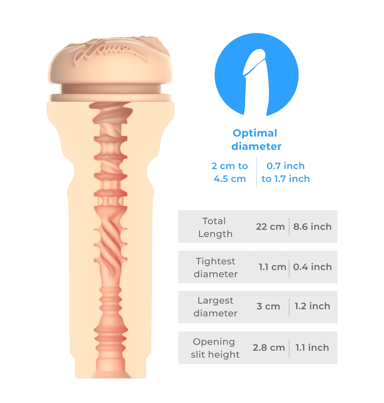 Độ dài tổng: 8.6" / 22cm – sâu lắng, ôm sát lý tưởng cho trải nghiệm mãnh liệt.